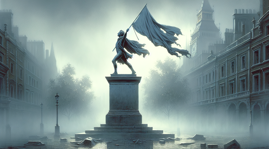 Banksy has a new work in central London, and this time the message is built into a statue rather than a wall. The piece, titled Blind Faith, shows a figure striding forward with a flag raised so high that it covers his eyes. He looks determined, even confident, but the pose leaves him unable to see the edge of the plinth beneath him. The result is simple, sharp, and easy to read: forward motion without clear sight can end in a fall.